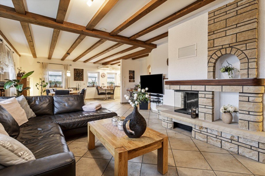 Ein weiteres Ausstattungsplus ist der gemauerte Kamin und die hochwertige Einbauküche mit Elektrogeräten. Die Werkstatt hat folgende technische Ausstattung: Kreis- und Bandsäge